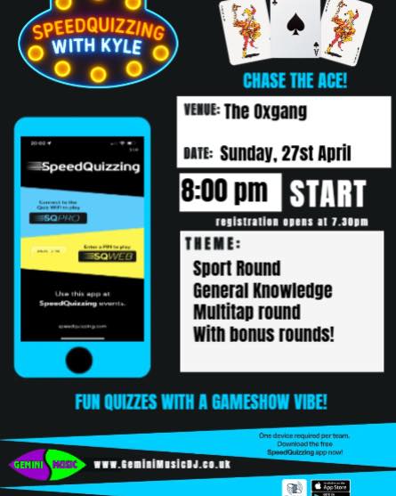 The Oxgang Grangemouth 15-17 Oxgang Road, GrangemouthJoin Gemini Music DJ, Weddings, Discos & Events for a fun quiz night starting at 8 PM on Sunday at the Oxgang! Test your knowledge and compete for a chance to win a £40 voucher for the first place team. Gather your friends and make it a night to remember!